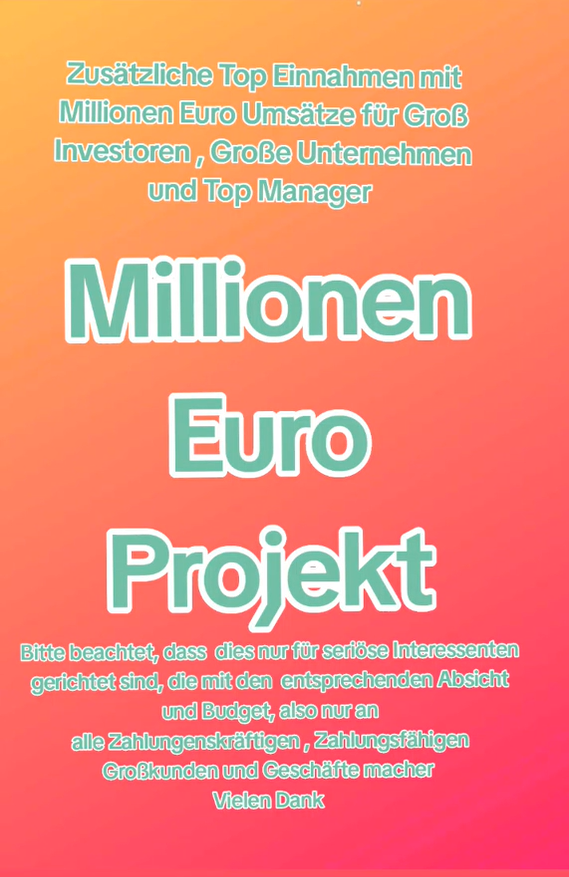 - Sensationelle zusätzliche Einkommen - Millionen Euro Projekt